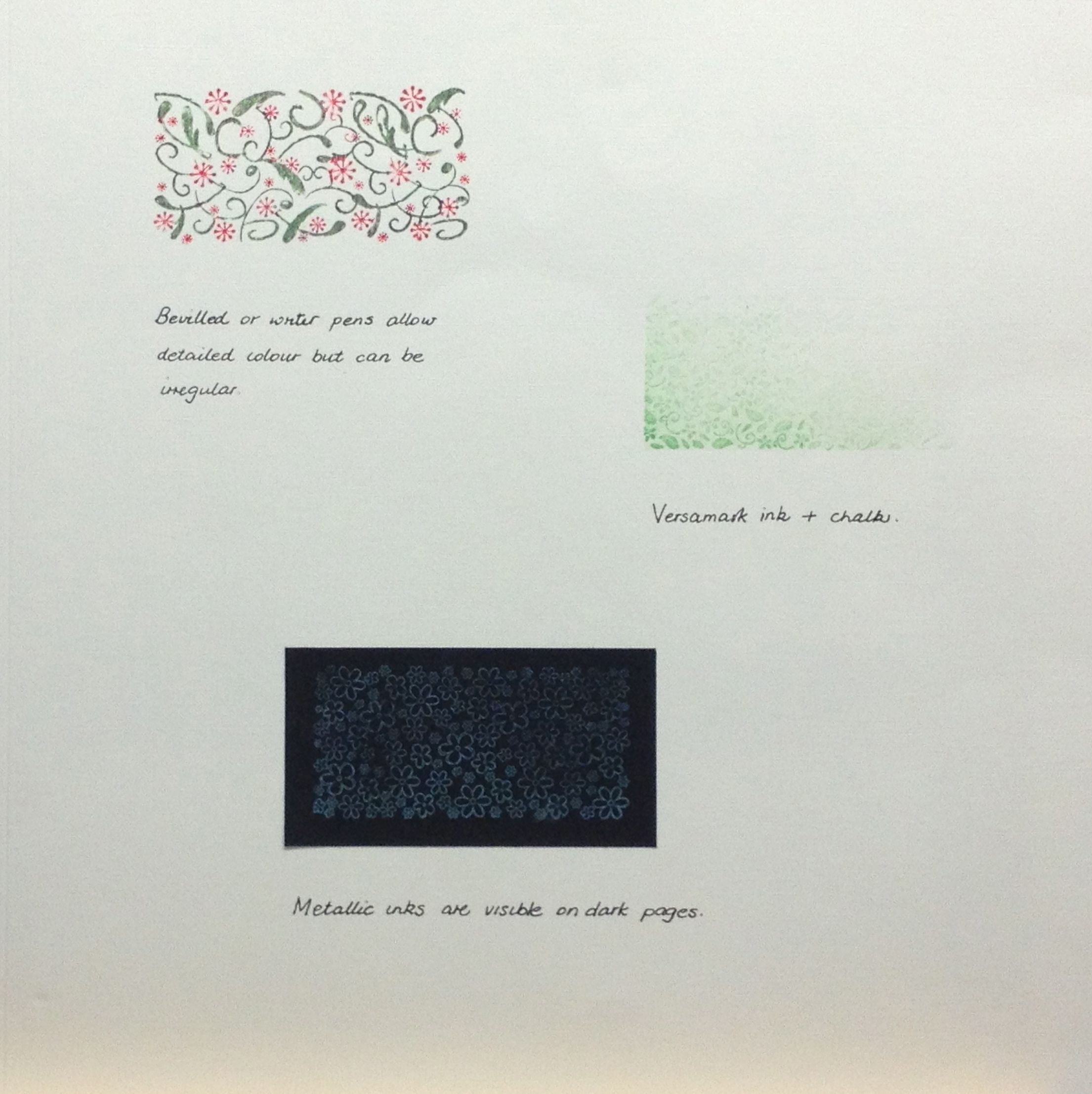 Stamped design on backing paper, decoration stamped, white gel pen added