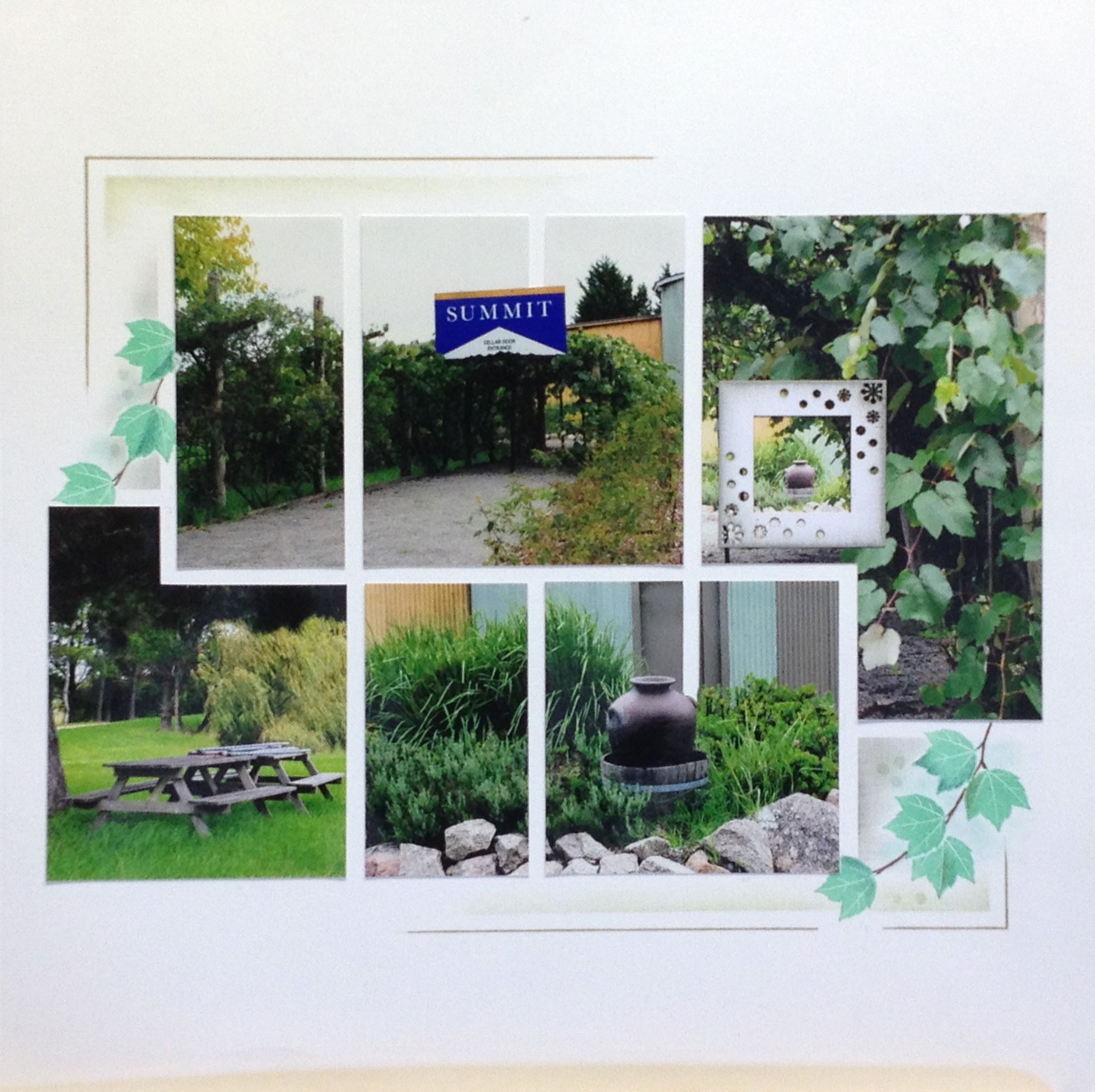 Summit Wines, Stanthorpe. Stamped leaves using masking. Decorative frame added, with chalked edge.